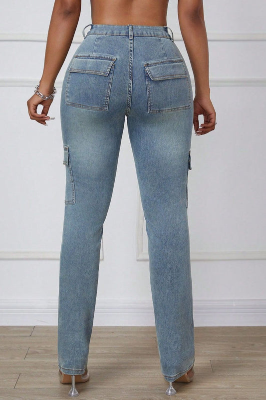 Straight Denim Cargo Pants