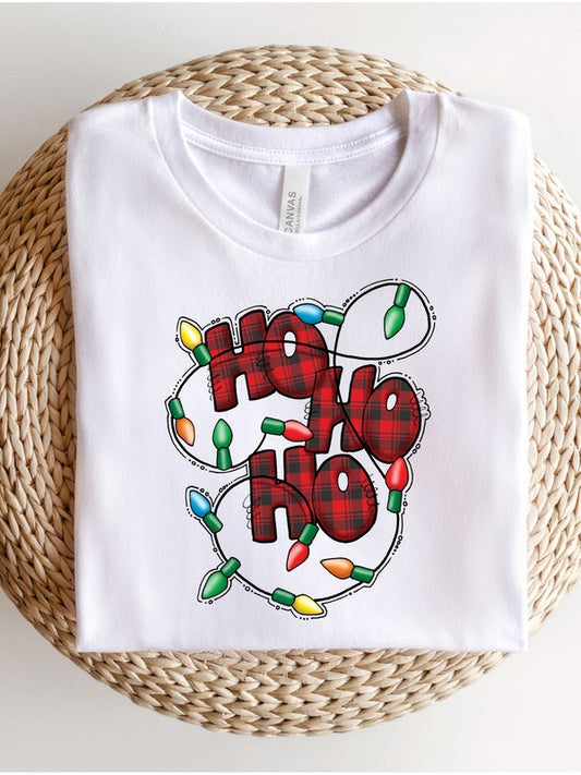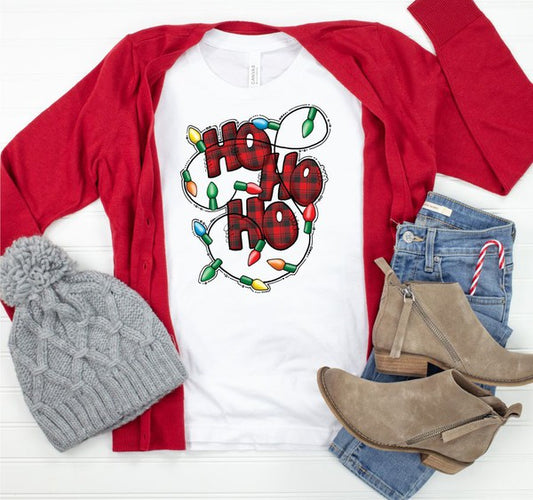 Ho Ho Ho Christmas Lights Crew Neck Tee