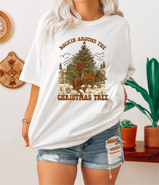Cowboy Rockin Christmas Tree Short Sleeve Tee