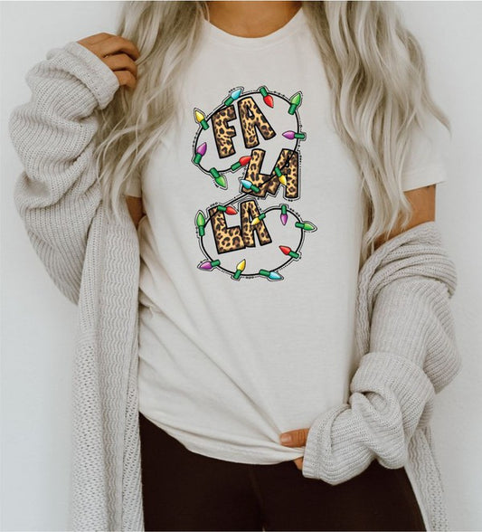 Fa La La Leopard Christmas Lights Crew Neck Tee