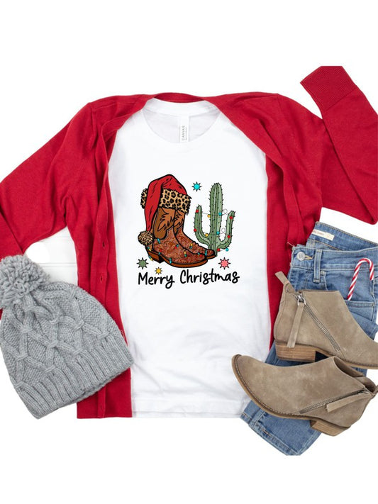 Merry Christmas Cowboy Boots Short Sleeve Tee