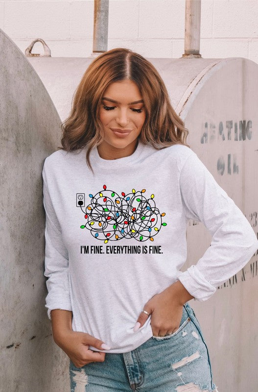 Im Fine Tangled Christmas Lights Crew LS Tee