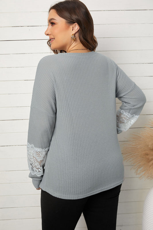 Plus Size Cutout Round Neck Spliced Lace Flounce Sleeve Blouse